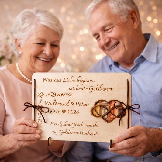 Personalisiertes Geldgeschenk zur Goldenen Hochzeit aus Holz