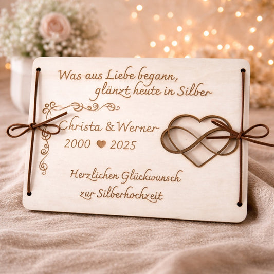 Personalisiertes Geldgeschenk zur Silberhochzeit aus Holz