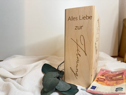 Ein personalisiertes Geldgeschenk zu diesen Anlässen zeigt Wertschätzung und bleibt als liebevolle Erinnerung erhalten – individuell gestaltet und mit viel Sorgfalt aus Holz gefertigt.