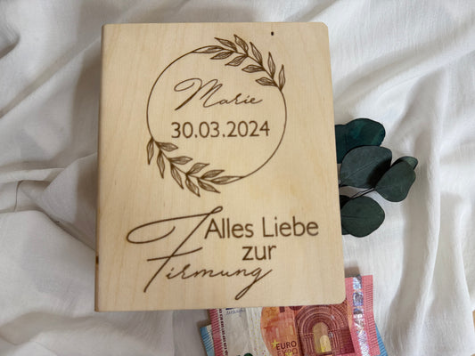 Um das Geldgeschenk zur Firmung persönlicher zu gestalten, kann es mit einer gravierten personalisierten Holzkarte oder einem kleinen Geschenk zur Firmung kombiniert werden. Diese Kombination vereint den praktischen Nutzen eines Geldgeschenks mit einer emotionalen und persönlichen Note.