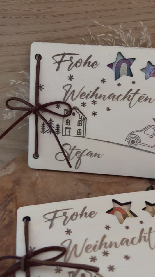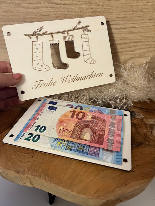 Super Idee! Als Weihnachtsgeschenk für Kinder, Freunde, Eltern, Mitarbeitende machen sich unsere personalisierten Geldgeschenke aus Holz richtig gut.