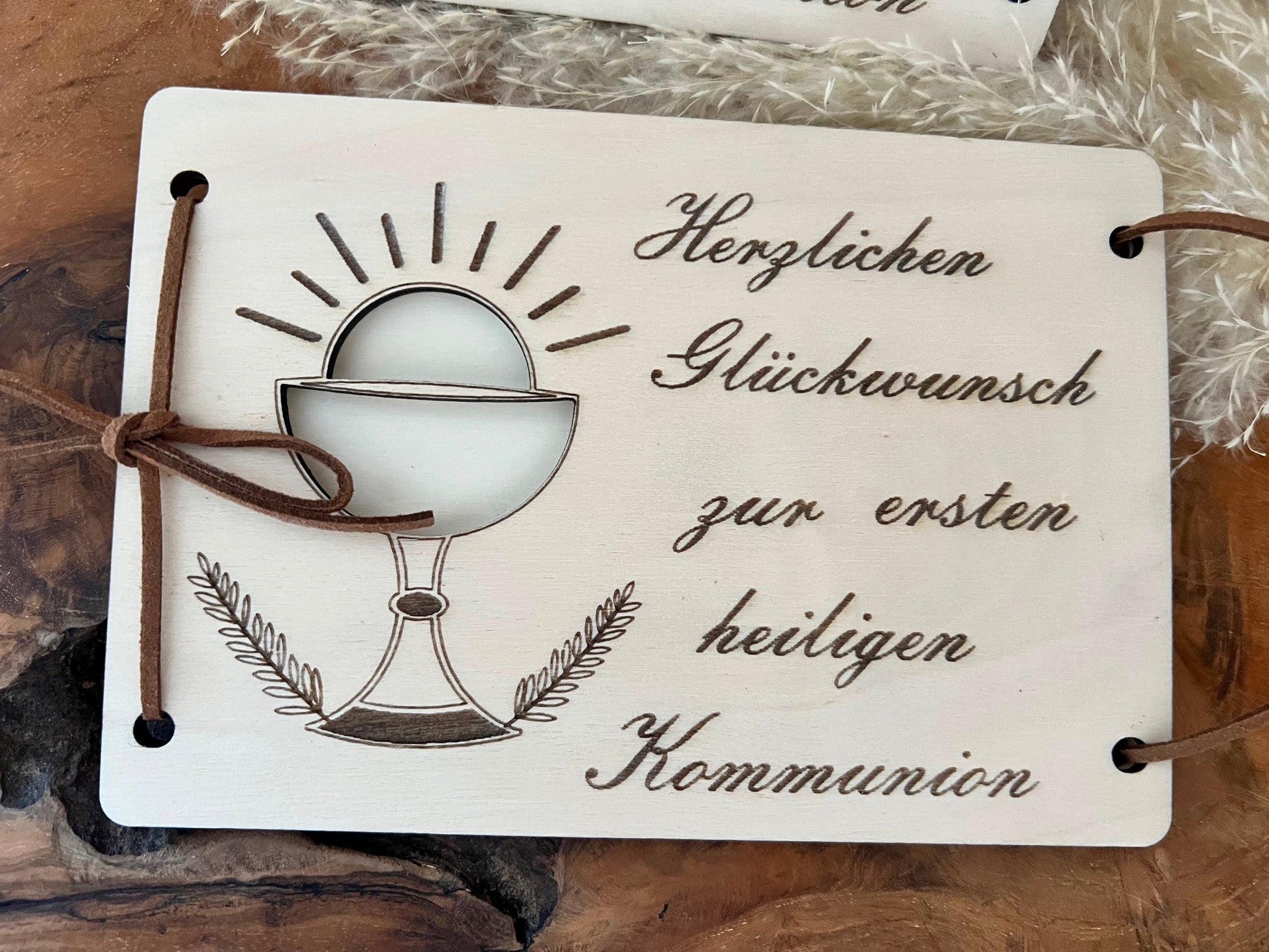 Unique gift: This wooden card is more than just a greeting card. It is an original gift that conveys your wishes in a special way and at the same time gives the child receiving communion the joy of discovering a small gift.