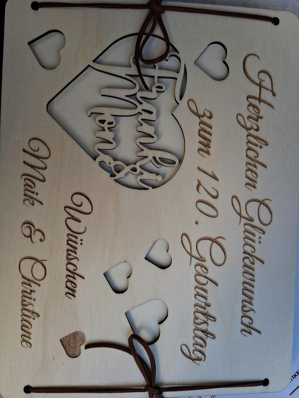 Die Holzkarte hat ein super schönes Design, wurde sauber verarbeitet und die Gravur ist klar. Die Details sind liebevoll gestaltet, sodass die Geldscheine darunter gut präsentierbar sind :)