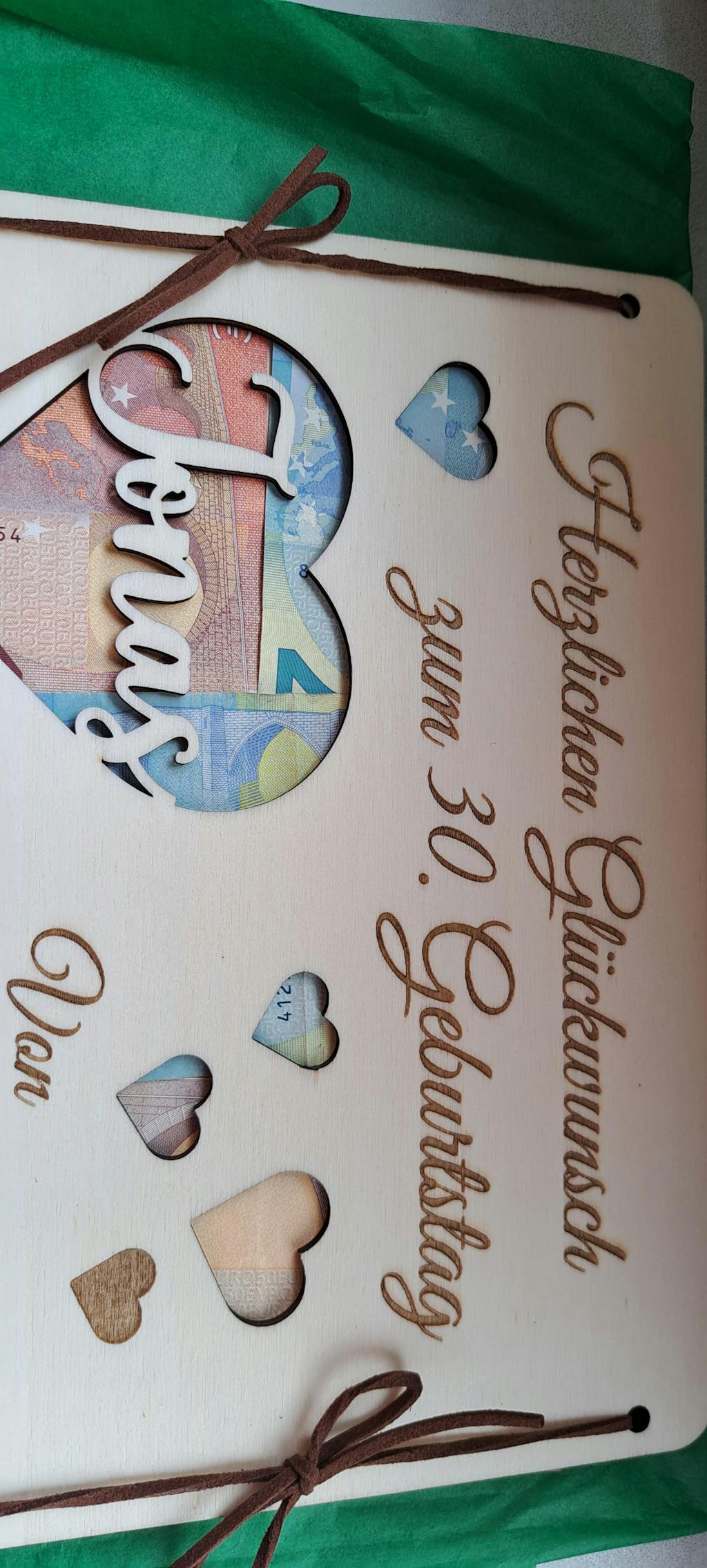 Geldgeschenkkarte aus Holz zum Geburtstag – mit graviertem Namen & Widmung