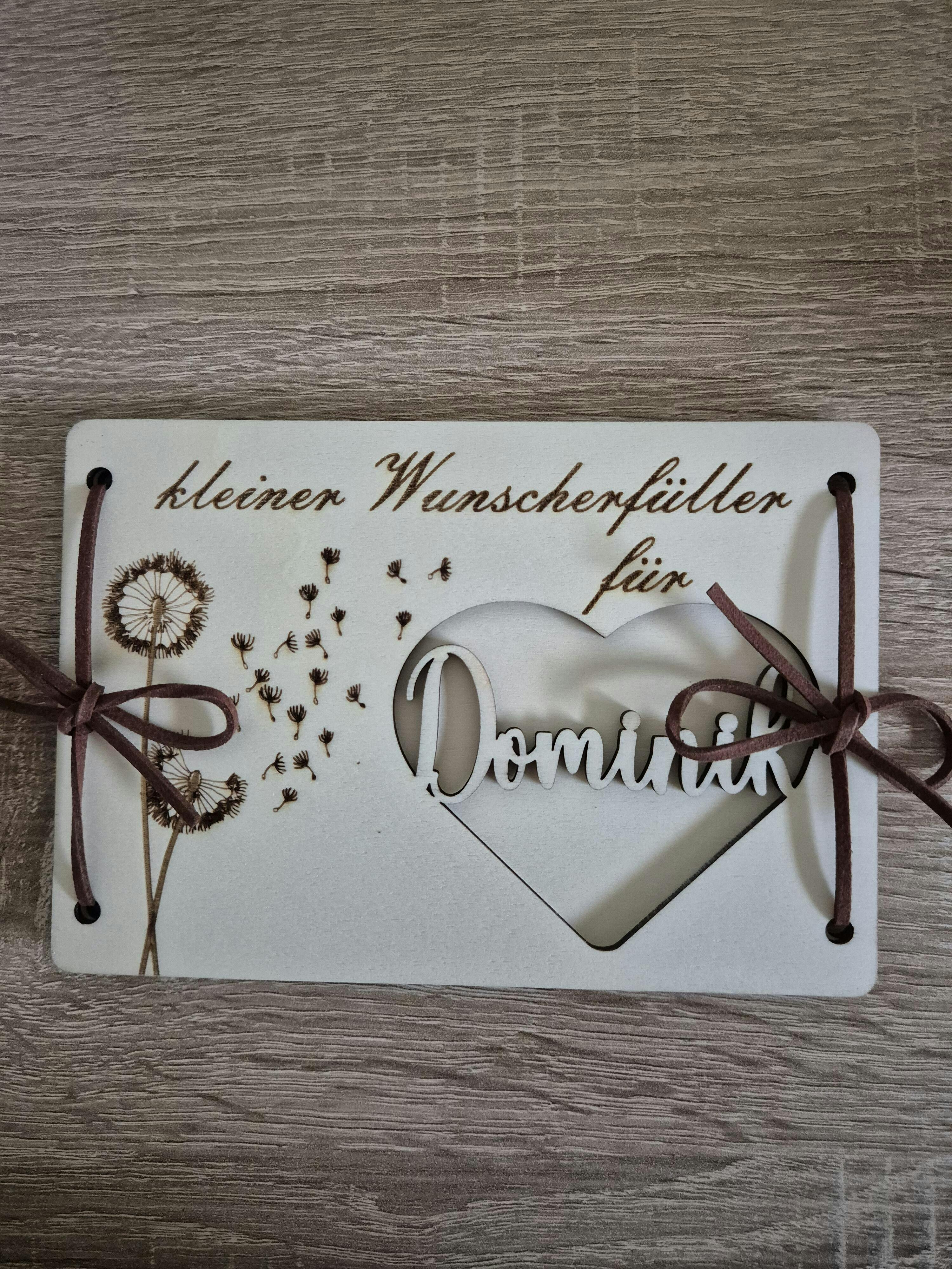 Personalisierbares Geldgeschenk aus Holz – Kleiner Wunscherfüller mit Gravur