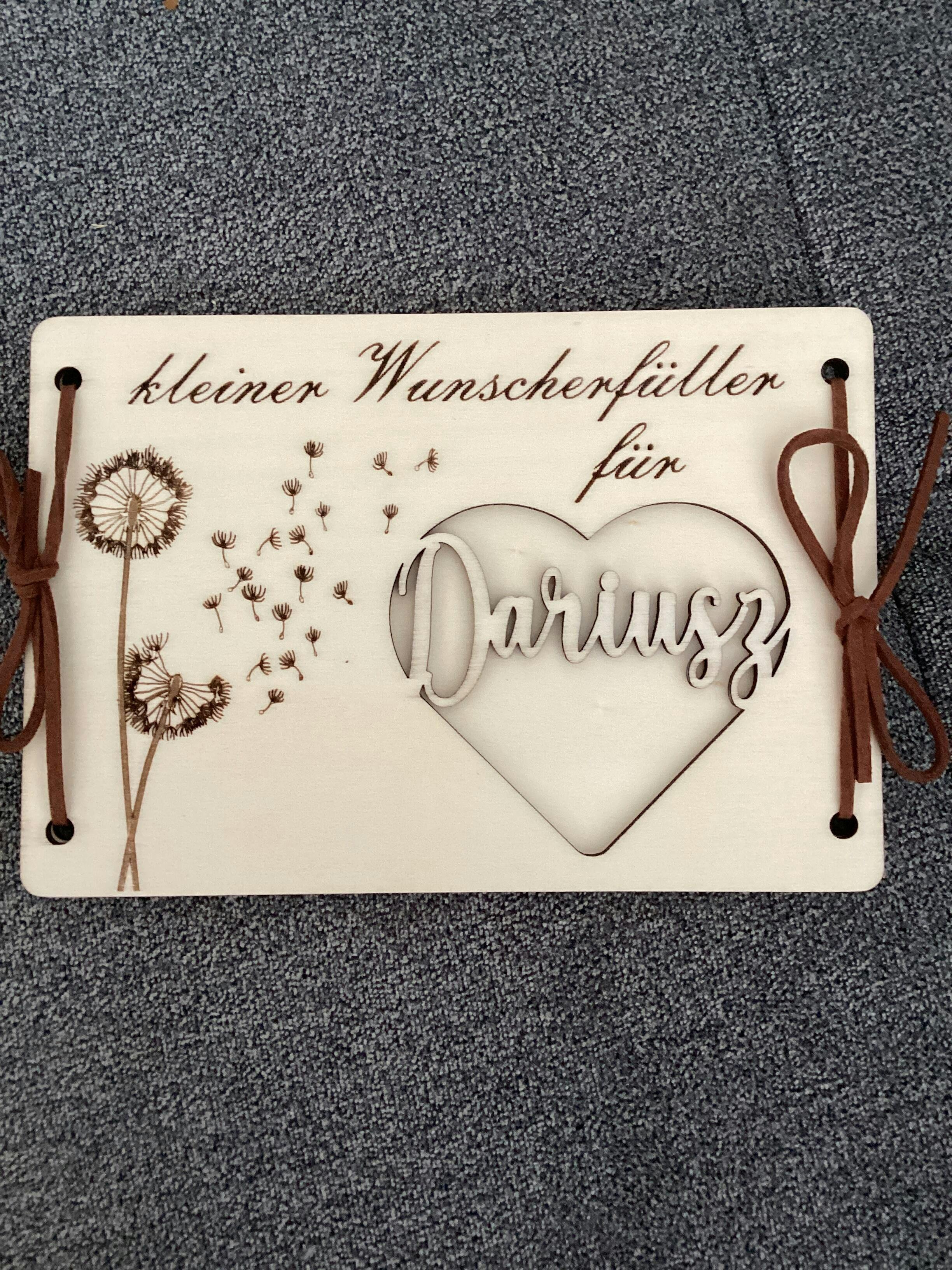 Personalisierbares Geldgeschenk aus Holz – Kleiner Wunscherfüller mit Gravur