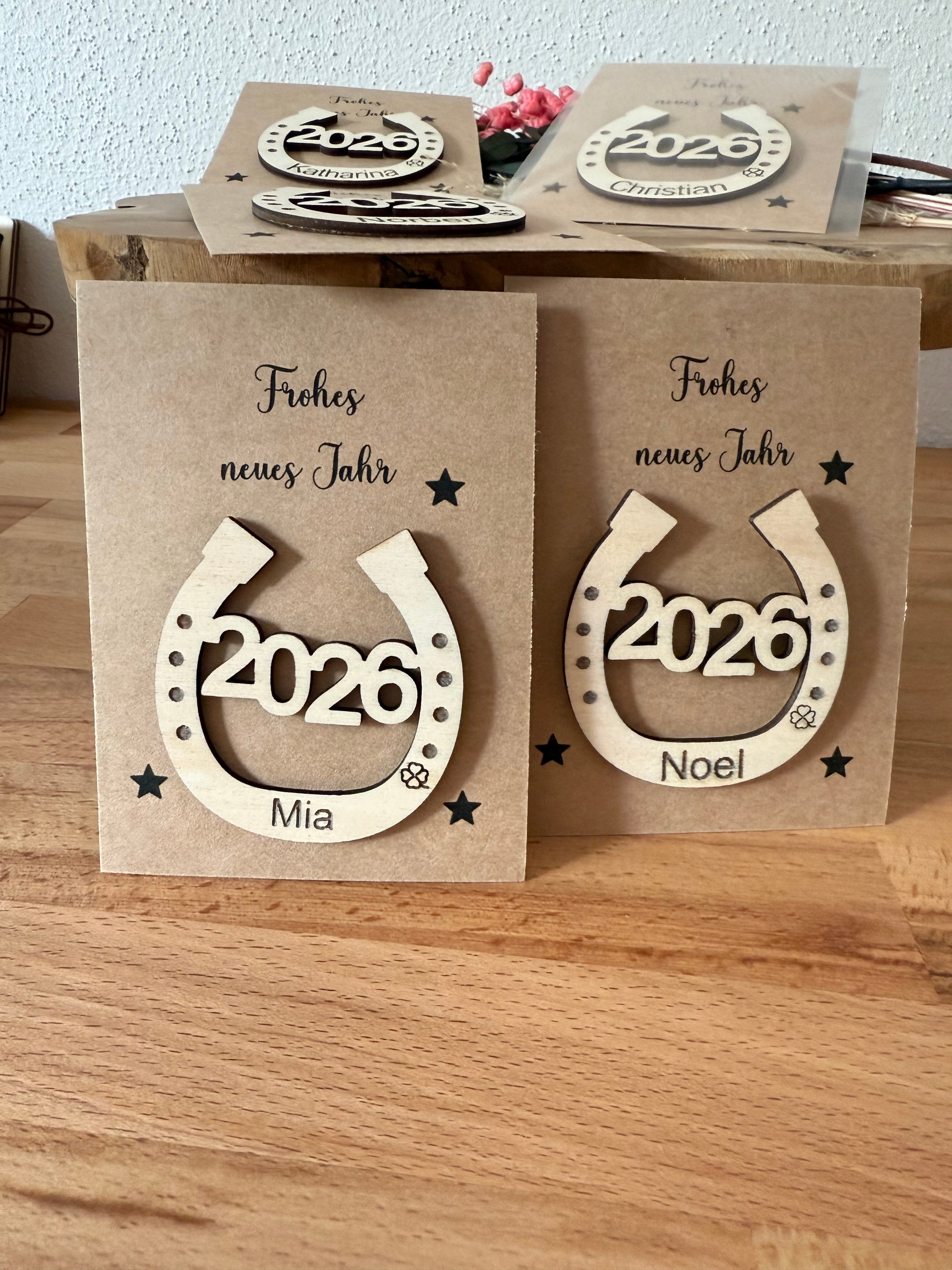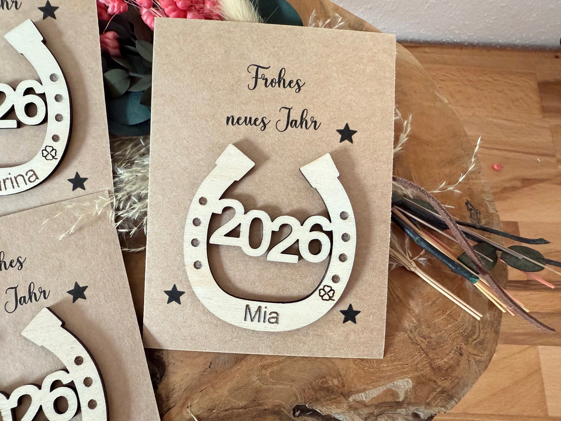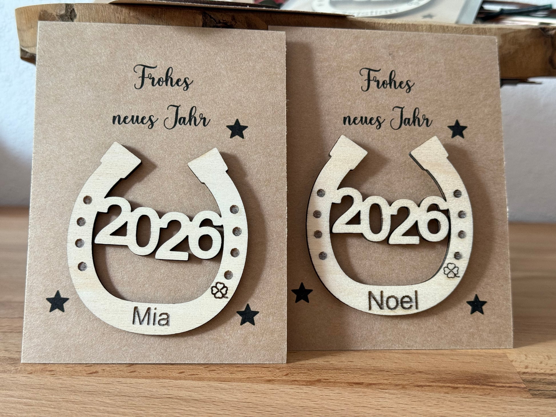 Willkommen im Jahr 2026 mit unserem personalisierten Glücksbringer Silvester – dem Hufeisen!