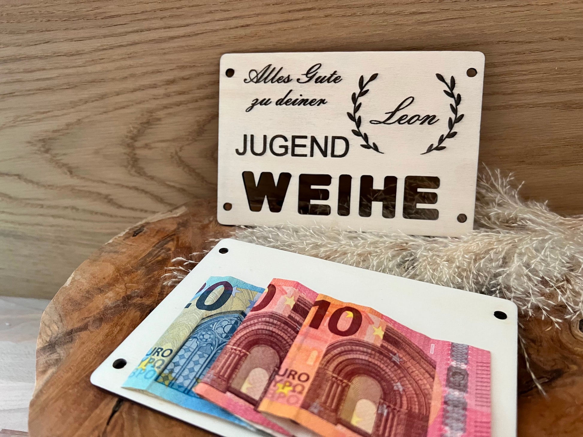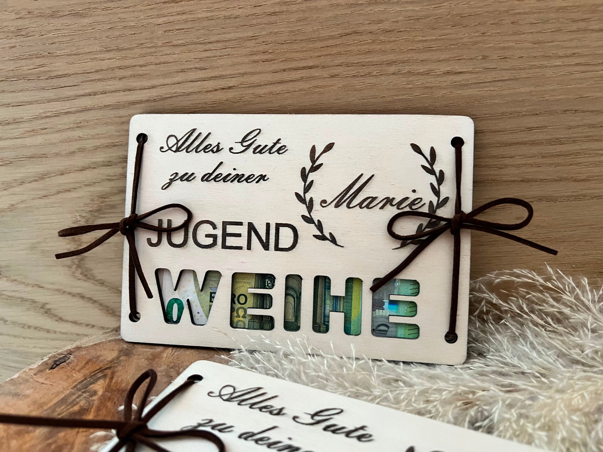 Diese Geldgeschenk-Holzkarte ist nicht nur eine praktische Möglichkeit, finanzielle Unterstützung zu überreichen, sondern auch eine bleibende Erinnerung an diesen bedeutsamen Tag.