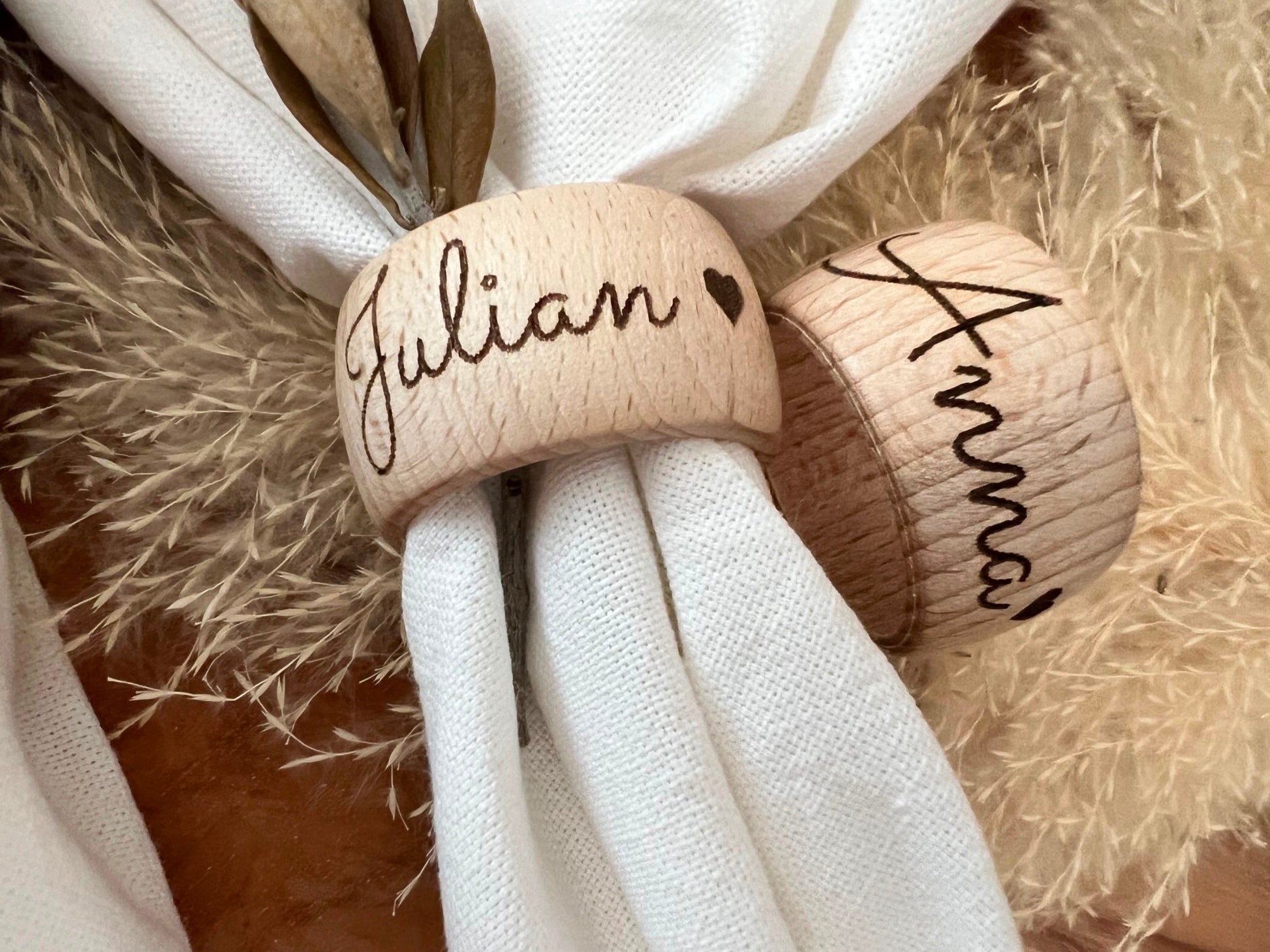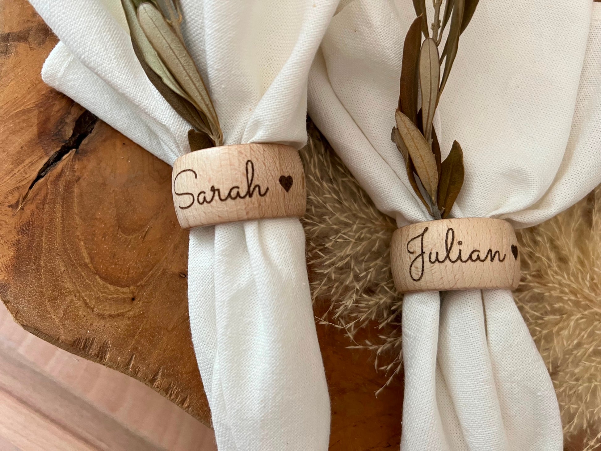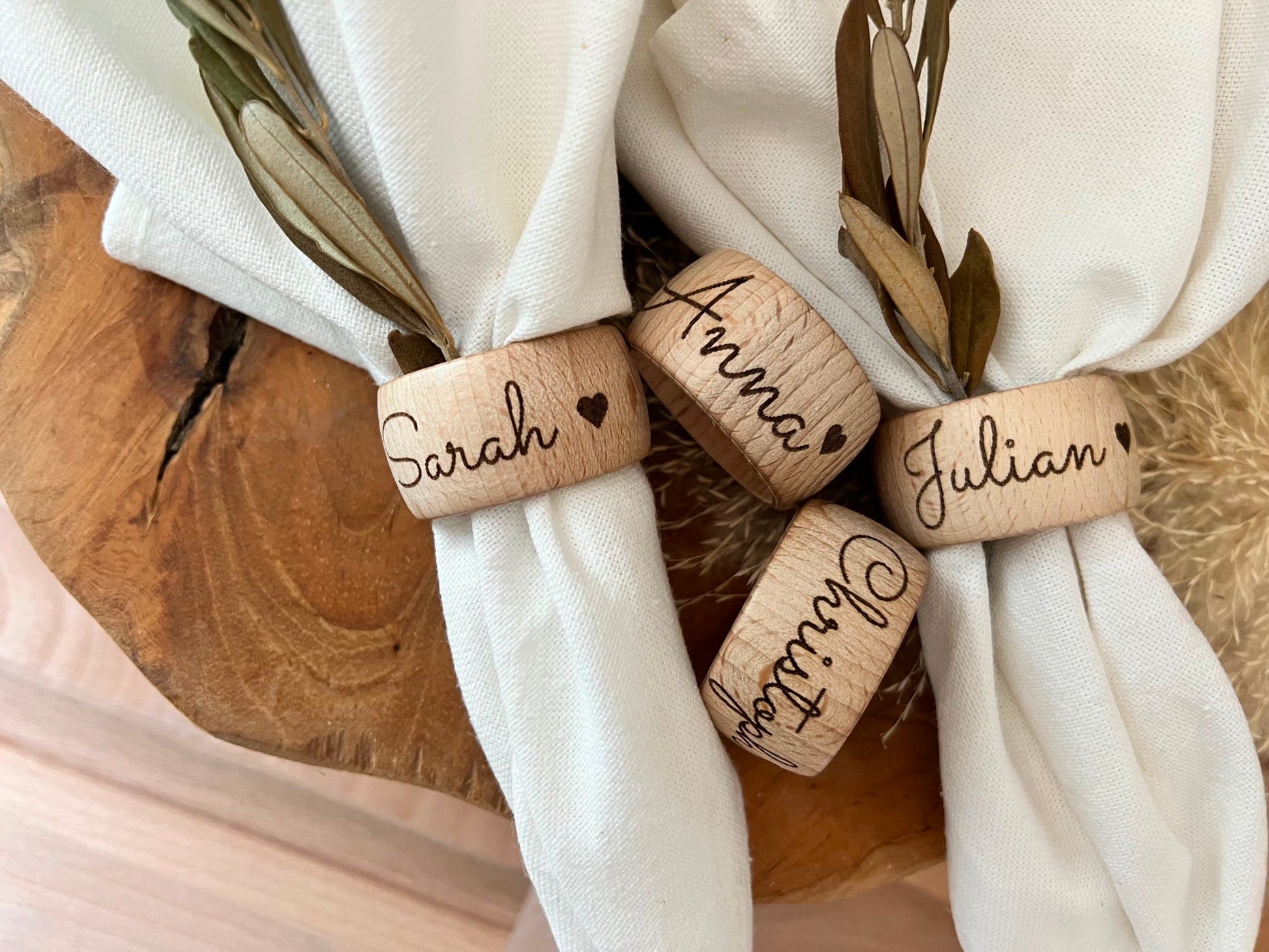 Entdecken unsere einzigartigen Holz-Serviettenringe, die eine hervorragende Möglichkeit sind, deine Tischdekoration bei Hochzeiten, Taufen und anderen festlichen Anlässen aufzuwerten.
