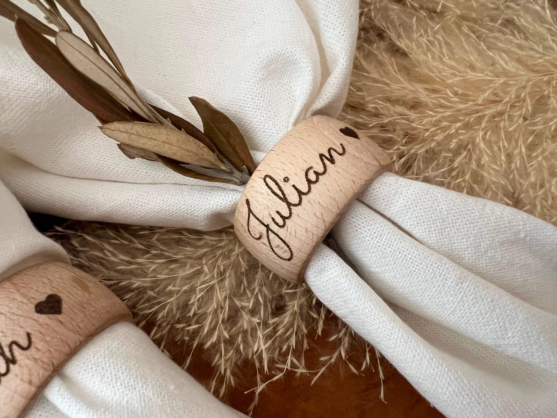Sie dienen nicht nur als praktische Serviettenhalter, sondern auch als elegante Tischkarten, auf denen die Namen deiner Gäste stilvoll verewigt sind.
